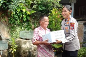 Dalam kegiatan tersebut, Kapolres Jembrana menyerahkan bingkisan bantuan kepada warga masyarakat, khususnya lanjut usia (lansia), sebagai bentuk perhatian dan empati Polri terhadap kondisi sosial masyarakat. Salah satu penerima bantuan yakni seorang lansia bernama Matius I Made Rimpig.